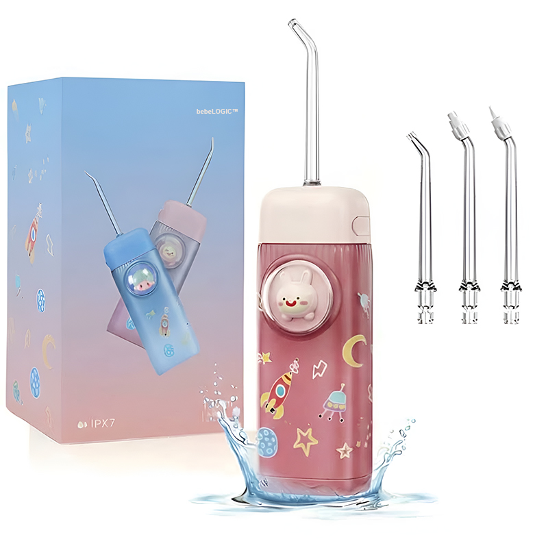 Irigator Bucal tip Dus Bucal Portabil pentru Copii, bebeLOGIC™, Rezervor extensibil 120 ml, 3 Duze Incluse, Materiale Non-Toxice