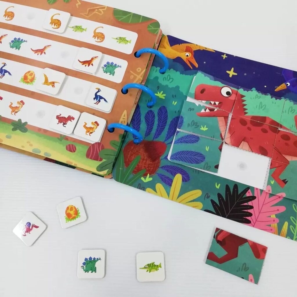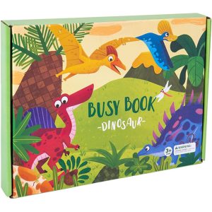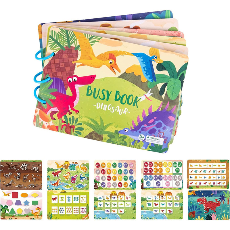Carte senzoriala Montessori cu activitati cu stickere Busy Book, Dinozauri, bebeLOGIC™