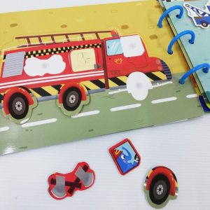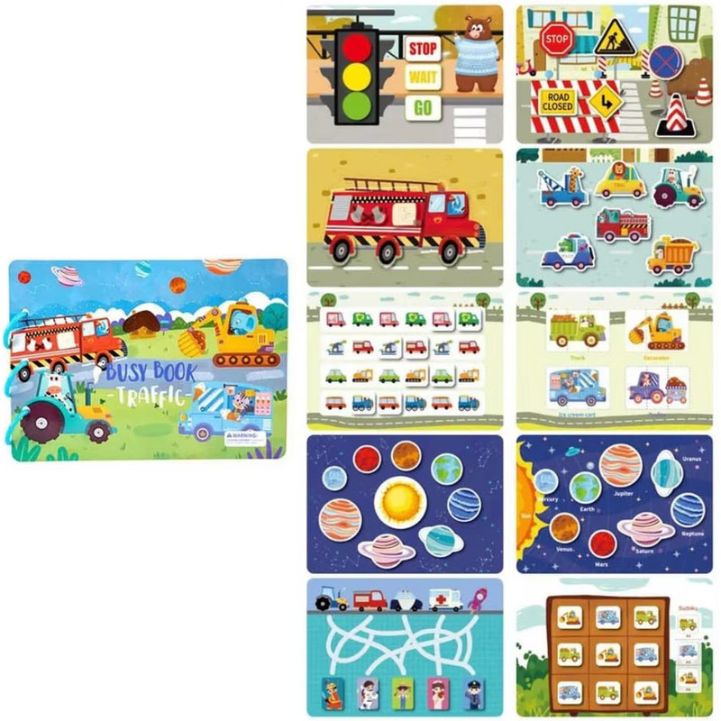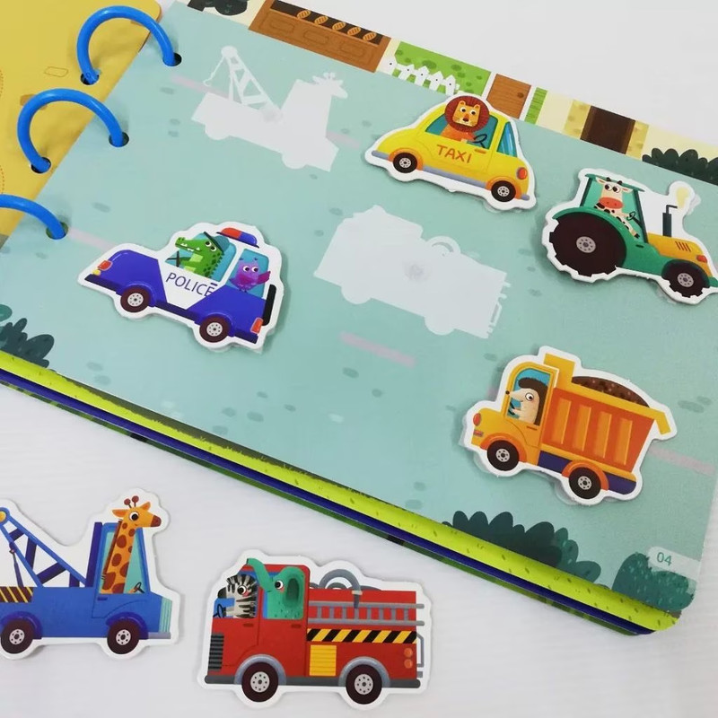 Carte senzoriala Montessori cu activitati cu stickere Busy Book, Vehicule, bebeLOGIC™