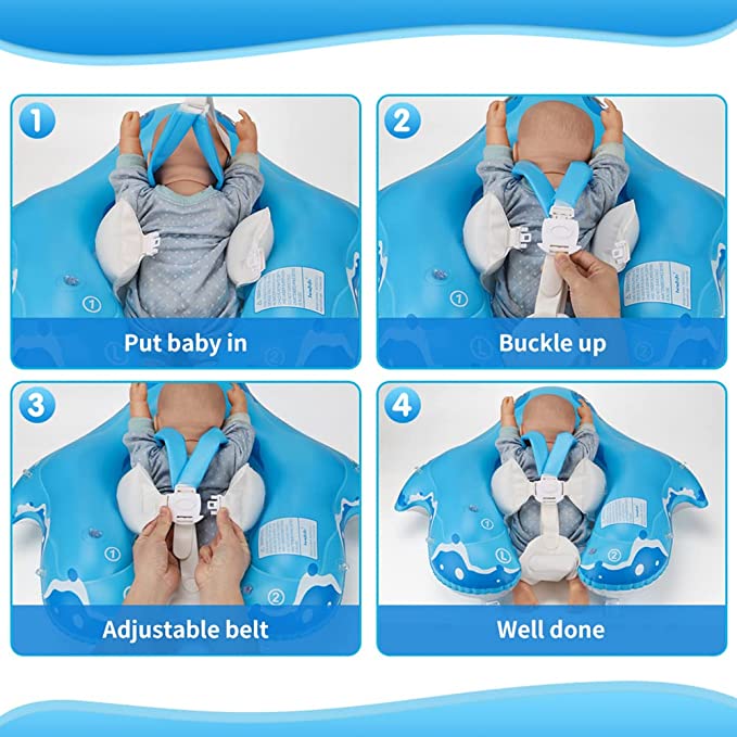 Protectie multipla: suportul negonflabil pentru piept din burete din partea de jos a colacului de inot sustine ferm pieptul si abdomenul copilului. Curelele de umar ingrosate si buzunarele duble cuu aer din interior fixeaza copilul pentru a evita rasturnarea sau alunecarea afara. Catarama de siguranta cu o singura apasare ofera si mai multa protectie si confort.