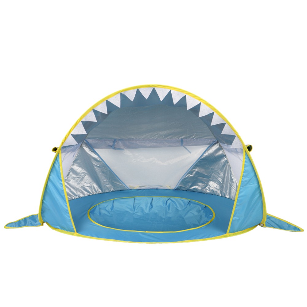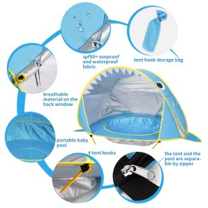 Cort de plaja portabi, impermeabil, pentru bebelusi, cu piscina, protectie solara UV UPF 50+, copii 3-48 de luni, rechin, bebeLOGIC™
