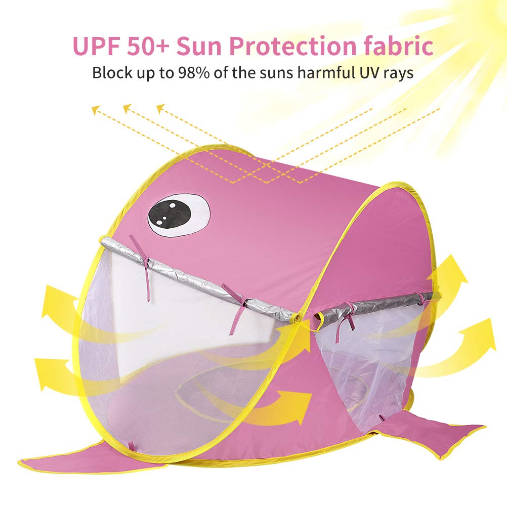 [Multifunctional] Corturile de plaja pentru copii nu sunt potrivite doar pentru utilizarea pe plaja, ci pot fi folosite si in vacanta, drumetii, camping si chiar in curtea din spate, permitandu-le bebelusilor sa se joace singuri, oferindu-ti mai mult timp pentru a face alte lucruri. Usor de pliat inapoi in geanta de transport. Cortul de plaja pop up pentru copii este cea mai buna alegere pentru a calatori.