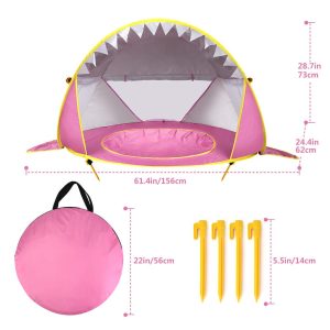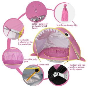 • Cort de plaja portabi, impermeabil, pentru bebelusi, cu piscina, protectie solara UV UPF 50+, copii 3-48 de luni, rechin, bebeLOGIC™