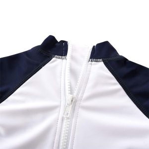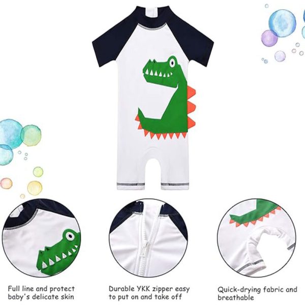 Costum de baie UV pentru copii, maneci scurte, fermoar si casca, 110cm, UPF50+, bebeLOGIC™