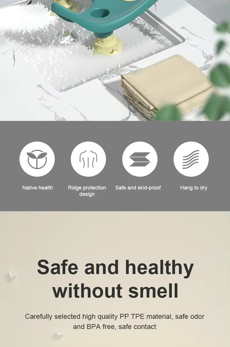 Scaun portabil de baie confortabil pentru nou-nascuti si bebelusi cu suport montabil pe chiuveta, lavoar sau cada, ventuze antiderapante, model floare, bebeLOGIC™