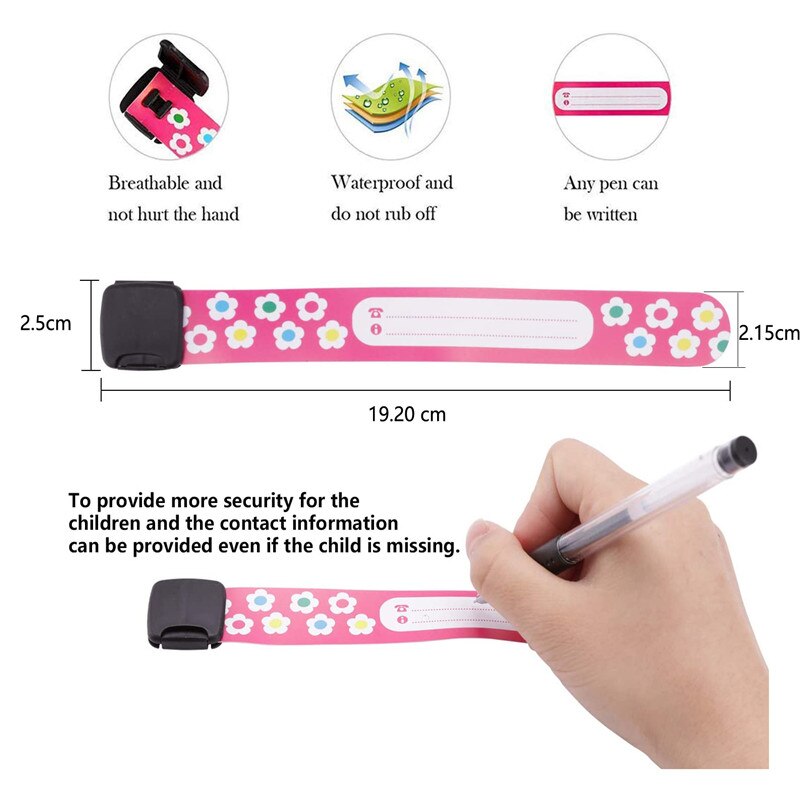 Bratara de identificare poate fi completata cu numarul de telefon al parintilor sau cu alte informatii importante (eventuale alergii etc.) pentru o interventie rapida in cazul unei urgente.