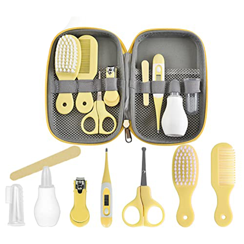 Set Ingrijire Bebelusi si Copii 8-in-1 Accesorii, MEDILOGIC™, cu Termometru Digital, Perie pentru Nou-Nascuti, Foarfeca Speciala pentru Copii, Galben