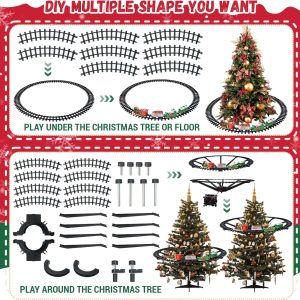 Sistemul de sine se fixeaza pe tulpina bradului, astfel incat trenuletul sa circule elegant in jurul crengilor, creand o atmosfera de basm.